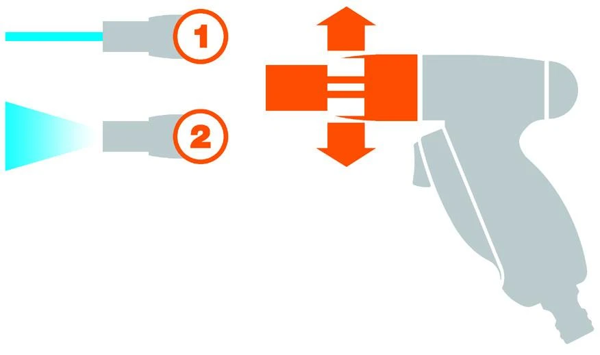 The Claber metal-jet spray gun is a fine piece of equipment ideal for the gardener looking for a tough spray nozzle. With a comfortable anatomically designed rubber grip and a convenient front on-off flow mechanism, this spray gun is a pleasure to use. The metal knob at the rear of the spray gun adjusts the strength of the water jet. This is a tough piece of kit made from high-quality UV stable plastic and metal parts, ensuring a long-life and protection from impact. The spray can be adjusted as required, from completely closed (concentrated jet) to completely open (fan spray).