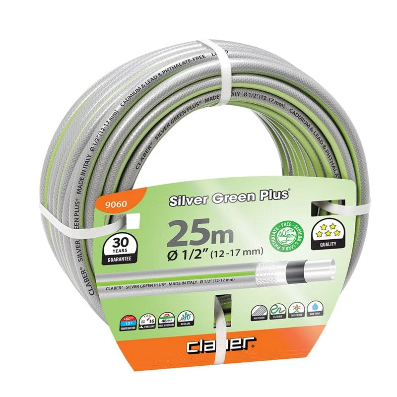 The Claber Silver Green Plus 25 metre hose is one of the best garden hose pipes we’ve had the privilege of using. With a super comfortable to touch outer layer and a specially designed anti-kink helix-pattern braid that provides both strength and kink prevention this hose pipe is a real joy to use.