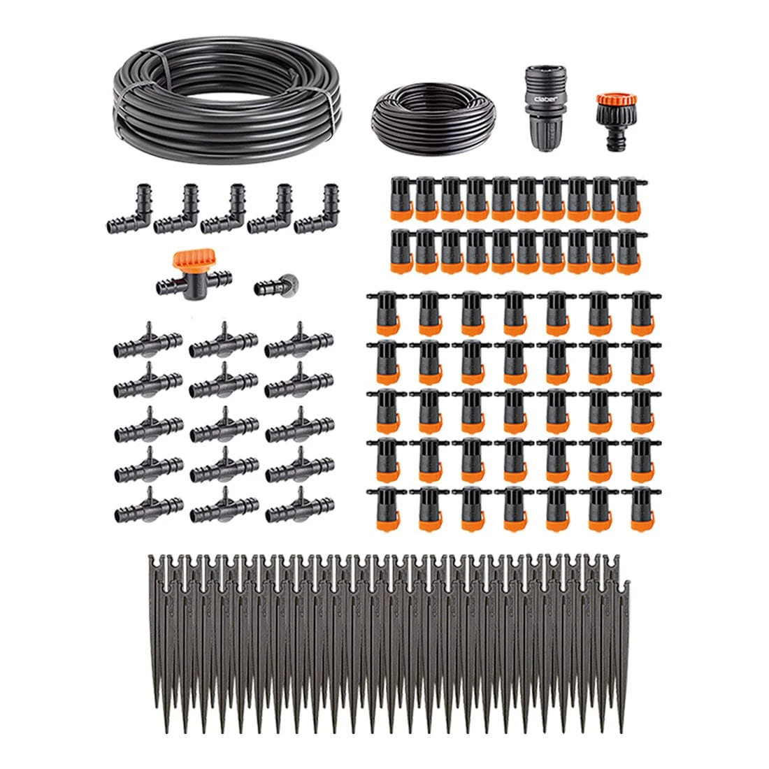 The Claber Terrazzo drip irrigation kit is specially designed for watering plants on terraces, patio areas and flower beds. With sophisticated adjustable drip emitters, you can quickly install a drip irrigation system that meets the requirements of all your plants. Adjust the flow of each emitter to match the demands of all your different plants. This kit includes everything required to install a drip system easily for up to 50 plants, offering great value for money. The kit can also be easily extended to meet the requirements of larger gardens. It can also be used with a
