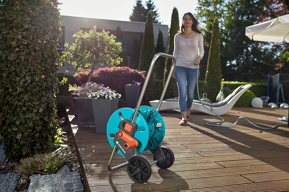 With an adjustable handle for space-saving storage, the reel can be neatly stored in a garage or garden shed without taking up much room. Gardena’s innovative frost protection ensures durability all year round for long-lasting use. Backed by Gardena’s 5-year warranty.