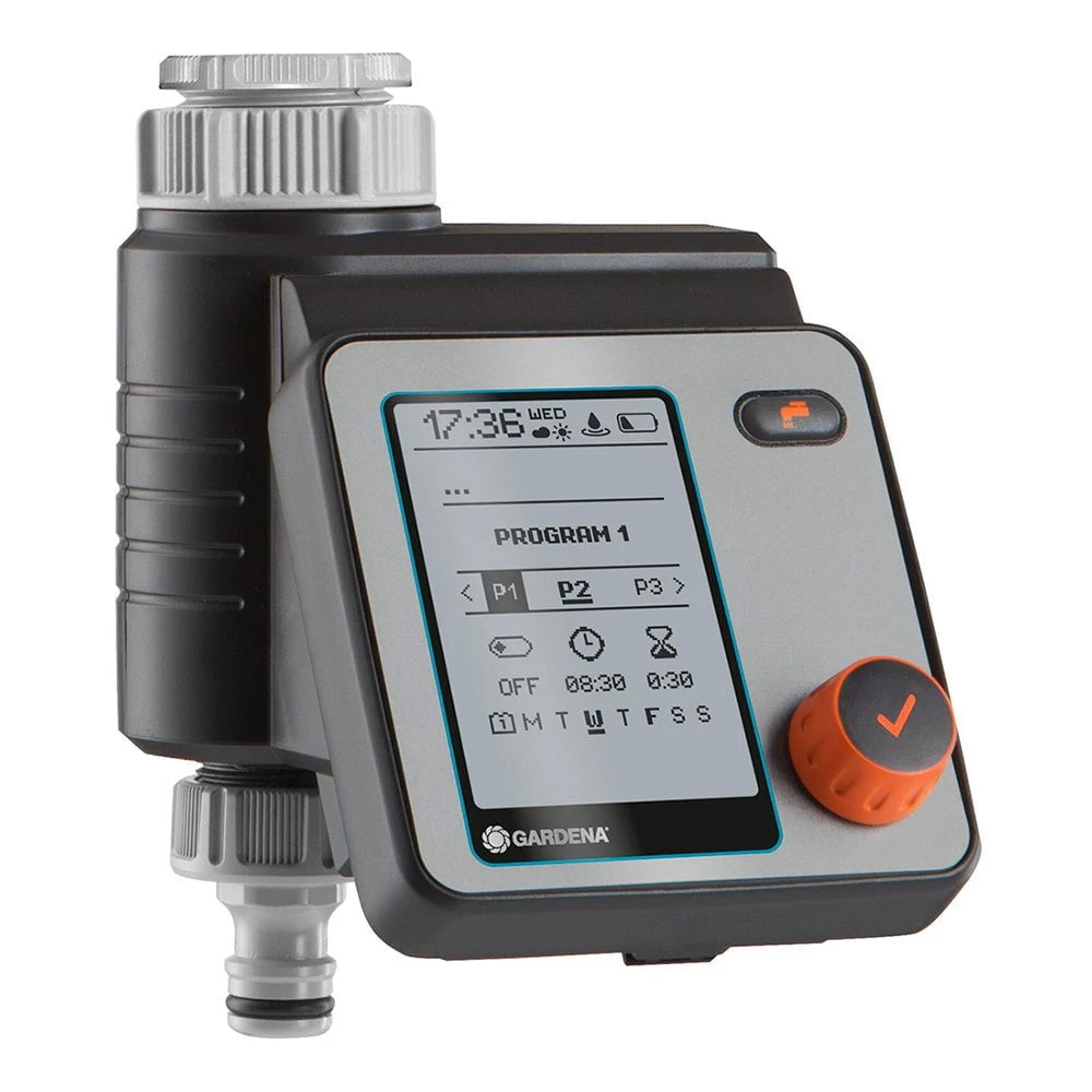 This water timer is compatible with the Gardena Soil Moisture Sensor for even smarter watering, ensuring the timer is not overwatering on wet days. With the Gardena Safe Water Stop feature, this timer will never become stuck open due to a low battery.