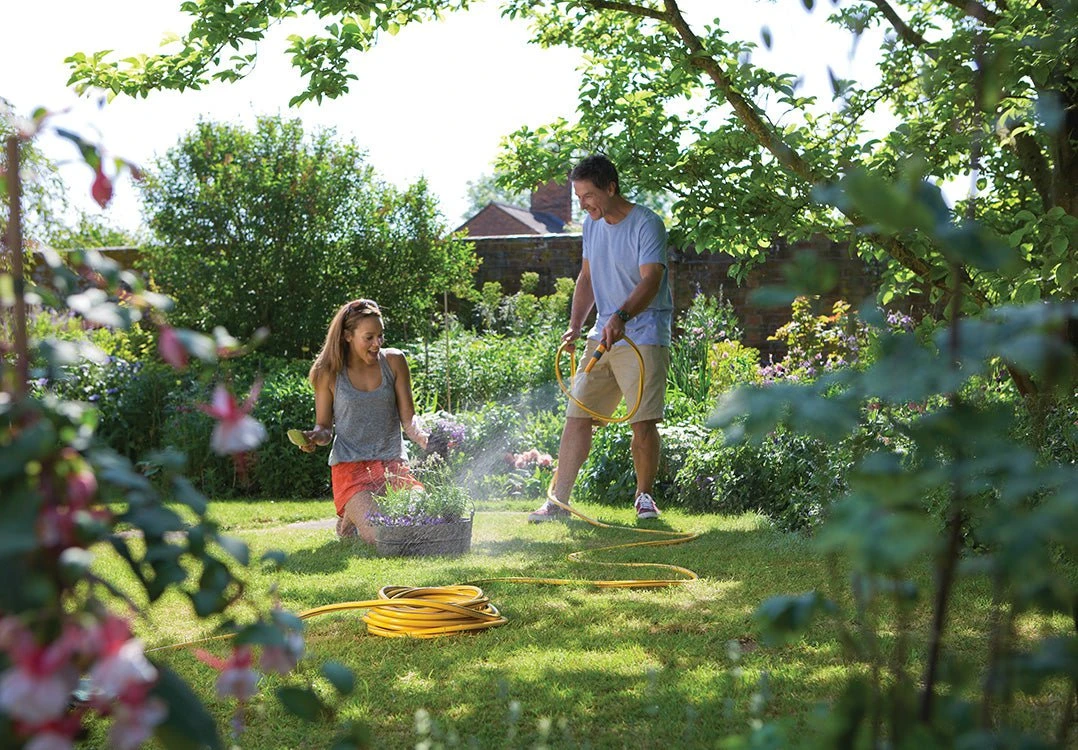 The Hozelock 30m starter hose is part of the cheapest Hozelock garden hose range, but don’t let that fool you, this is a quality hose that is great for general use in the garden. 3 layers of braided PVC make this a super strong and flexible hose. The braided layer stops expansion and warping, the smooth PVC inner layer allows the water to flow quickly, and the strong outer layer of PVC provides strength and durability. This kit also comes with a tap connector, two hose end connectors and a spray nozzle; everything needed to get your garden watered.