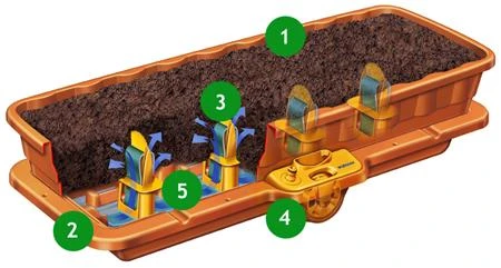The Hozelock Flower and Vegetable watering kit is great for precise watering to the plant roots for up to 14 days. Getting set up is easy, simply plant your flowers or vegetables in the 30 litre decorative container, then fill the large 15 litre reservoir with water and you’re all done. Water is taken to the soil via the capillary watering spikes, providing only the water that the plant needs to flourish and minimising water wastage. Fill the reservoir either through the dedicated opening or plug in your hosepipe directly to the reservoir using a Hozelock hose end connector.