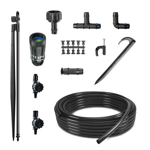 We’ve used our wealth of knowledge to create the perfect micro jet irrigation kits to get you up and running quickly with an irrigation system of your own. The Micro Jet System Large Kit is a comprehensive kit that includes all the parts needed to install a micro jet irrigation system for up to 30 metres of flower bed/border, or up to 10 vegetable patches. Once installed, the micro jet system will provide water that is necessary for your plants to grow lush and healthy and free your spare time for leisure and relaxation. Use in conjunction with a